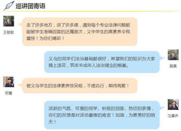 一堂精彩的法治課,讓同學(xué)們受益匪淺。衷心希望同學(xué)們以本次巡講活動(dòng)為契機(jī),增強(qiáng)用法律保護(hù)自己的能力,真正認(rèn)識(shí)到法治對(duì)于每個(gè)人的重要意義,成為法治的忠實(shí)崇尚者、自覺遵守者和堅(jiān)定捍衛(wèi)者!