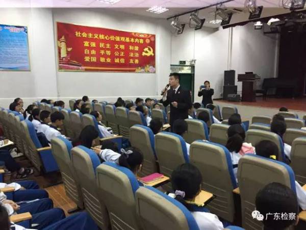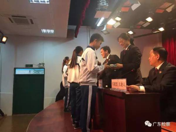 下午15時,來自省、市、區(qū)三級檢察機關(guān)的未成年人檢察工作辦公室負責(zé)人及檢察官代表聯(lián)同教育局、團區(qū)委及學(xué)校的相關(guān)領(lǐng)導(dǎo)共同舉行了簡單而隆重的“法治進校園”活動啟動儀式,向?qū)W生代表贈送了青少年犯罪預(yù)防畫冊,并觀看了反映檢察機關(guān)未成年人附條件不起訴工作的法治宣傳微電影。