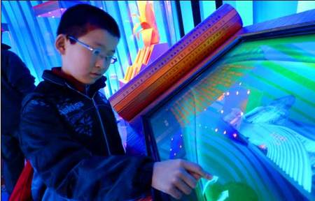 4月4日在上海世博園,來自山東濟(jì)南的小朋友顧天寧正在參觀各會館。據(jù)了解,上海世博會山東館項(xiàng)目于4月3日竣工,成為第一個(gè)投入試運(yùn)營的省區(qū)市館。這名幸運(yùn)的小朋友成為第一位參觀的小觀眾。