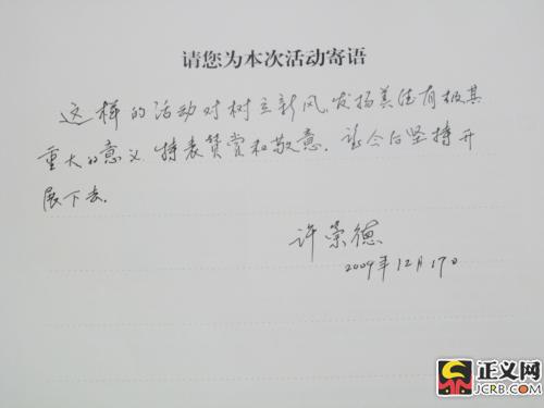 寄語(yǔ):這樣的活動(dòng)對(duì)樹(shù)立新風(fēng),發(fā)揚(yáng)美德有極其重大的意義,特表贊賞和敬意,望今后堅(jiān)持開(kāi)展下去。