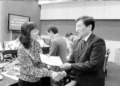 2011年5月17日,北京市檢察院民事、行政檢察專家咨詢委員會(huì)正式成立,北京市檢察院檢察長(zhǎng)慕平(右)向35位該院聘請(qǐng)的專家咨詢委員會(huì)委員頒發(fā)了聘書。 本報(bào)記者趙曉星 通訊員張旭攝