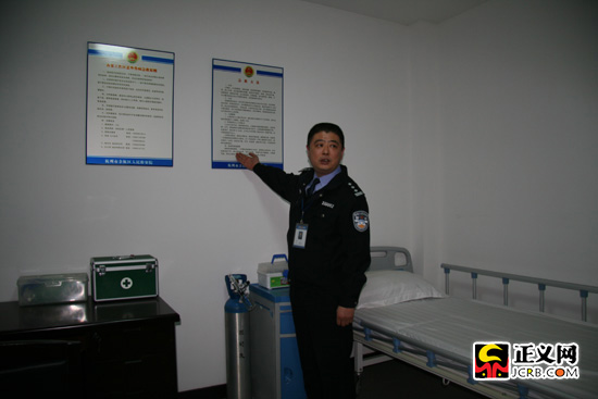今年5月份,一位犯罪嫌疑人劉某在接受詢問中突感不適,辦案人員立刻中止審訊,啟動(dòng)醫(yī)療救援處置預(yù)案,隨后醫(yī)學(xué)專家于15分鐘內(nèi)迅速趕到訊問室,對(duì)犯罪嫌疑人進(jìn)行檢查,最終確診為高血壓,犯罪嫌疑人的病情很快得到控制,一起可能發(fā)生的辦案安全事故得到了及時(shí)避免。