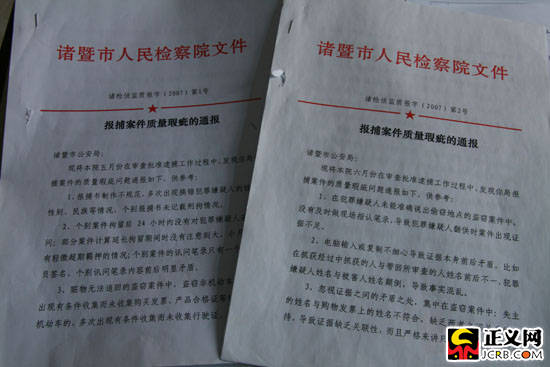 諸暨市人民檢察院自2007年下半年開始實(shí)行案件質(zhì)量瑕疵通報機(jī)制,該機(jī)制是檢察院院在辦理批捕、起訴案件時,對偵查機(jī)關(guān)在執(zhí)法過程中出現(xiàn)的一些輕微違法進(jìn)行收集并定期通報予以糾正的一種監(jiān)督方法。朱晶/攝