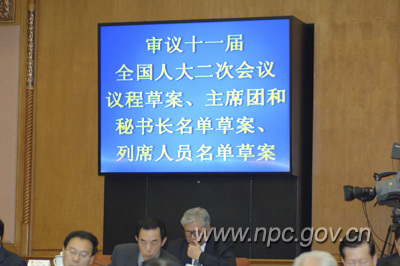 審議十一屆全國(guó)人大二次會(huì)議議程草案等