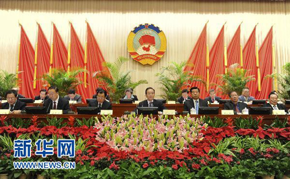 10月20日,政協(xié)十一屆全國委員會常務(wù)委員會第十一次會議在北京開幕。中共中央政治局常委、國務(wù)院總理溫家寶出席開幕會,并作了關(guān)于中共十七屆五中全會會議情況和會議精神的報告。新華社記者謝環(huán)馳攝