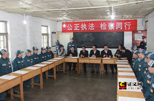 三門峽市檢察院駐硤石監(jiān)獄檢察室檢察官、正義網(wǎng)記者在服刑人員減刑假釋座談會座談會現(xiàn)場。姚宇/攝