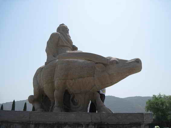 下了關(guān)樓,來到花崗巖砌成的“老子騎青牛”雕像前,很多人都會產(chǎn)生這樣的疑問:老子離關(guān)西去之后,去了哪里?這個問題一問千年,我也同樣好奇。據(jù)說圣人繼續(xù)西行至秦國歸隱山林,也有說他西行至昆侖山修道。但我寧愿相信圣人出關(guān)后,得道上天做了太上老君,他下臨萬民,造福靈寶百姓;他仙氣一呵,庇蔭寺河山的蘋果和后地的大棗;他道袖一揮,成就小秦嶺的金光燦燦。